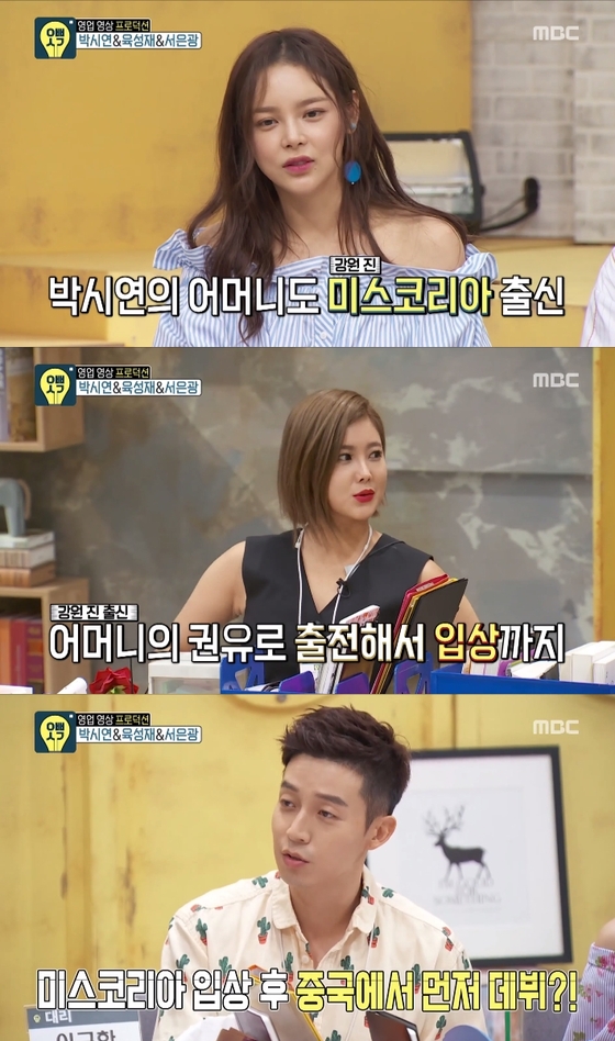 박시연이 미스코리아 출연 이유를 밝혔다. 7일 오후 방송된 mbc 예능프로그램 '오빠생각'에는 배우 박시연, 그룹 비투비 육성재 서은광이 의뢰인으로 출연했다. #박시연 미스코리아 서울 미 1999 → 2000 → 2001 이혜원, 박성희, 한미진 김미리, 박미선, 김소영 박정언, 백명희, 하경민 파일:external/sccdn.chosun.com/2014091801001615200102021.jpg 이름 박시연 본명 박미선 (朴美宣) 출생 1979년 3월 29일, 부산광역시 부산진구 가족 여동생 박민주 우연히 들른 앙드레 김 패션샵에서 2000년 미스코리아 진 당시 손태영ㆍ박시연 입상…미스코리아 수영복. 박시연 2000년 미스코리아 서울 미.